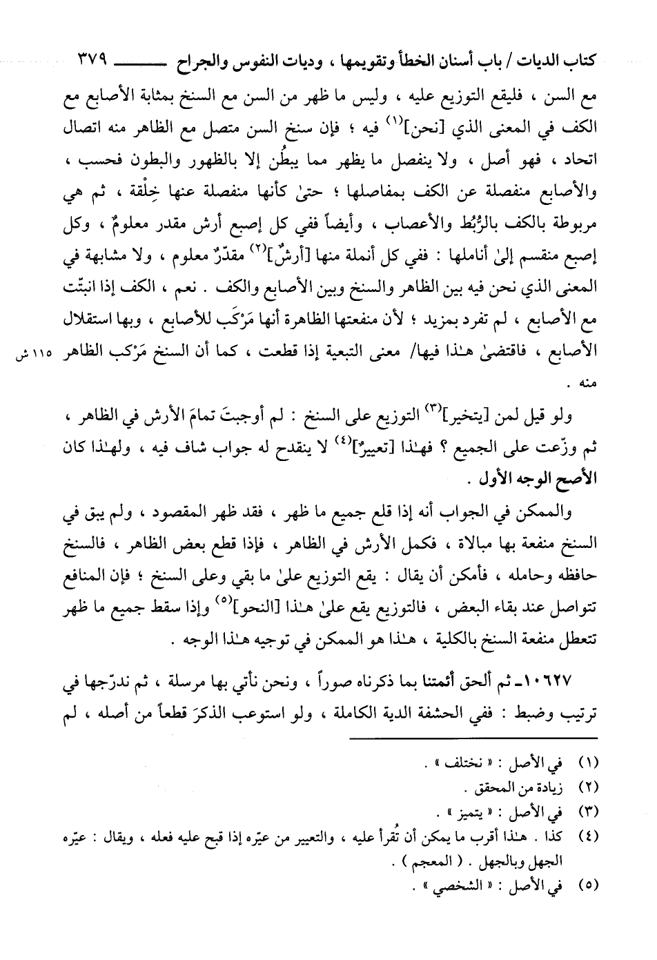 مع السن، فليقع التوزيع عليه، وليس ما ظهر من السن مع السنخ بمثابة الأصابع مع الكف في المعنى الذي [نحن] (1) فيه؛ فإن سنخ السن متصل مع الظاهر منه اتصال اتحاد، فهو أصل، ولا ينفصل ما يظهر مما يبطُن إلا بالظهور والبطون فحسب، والأصابع منفصلة عن الكف بمفاصلها؛ حتى كأنها منفصلة عنها خِلْقة، ثم هي مربوطة بالكف بالرُّبُط والأعصاب، وأيضاًً ففي كل إصبع أرش مقدر معلومٌ، وكل إصبع منقسم إلى أناملها: ففي كل أنملة منها [أرشٌ] (2) مقدّرٌ معلوم، ولا مشابهة في المعنى الذي نحن فيه بين الظاهر والسنخ وبين الأصابع والكف. نعم، الكف إذا انبتّت مع الأصابع، لم تفرد بمزيد؛ لأن منفعتها الظاهرة أنها مَرْكَب للأصابع، وبها استقلال الأصابع، فاقتضى هذا فيها معنى التبعية إذا قطعت، كما أن السنخ مَرْكب الظاهر منه.