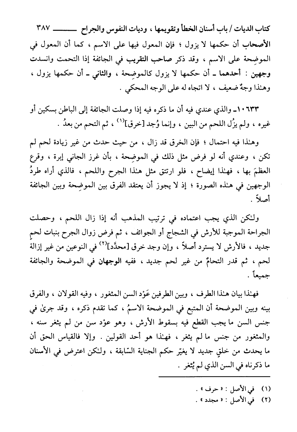 10633 - والذي عندي فيه أن ما ذكره فيه إذا وصلت الجائفة إلى الباطن بسكين أو غيره، ولم يزُل اللحم من البين، وإنما وُجد [خرق] (1)، ثم التحم من بعدُ.