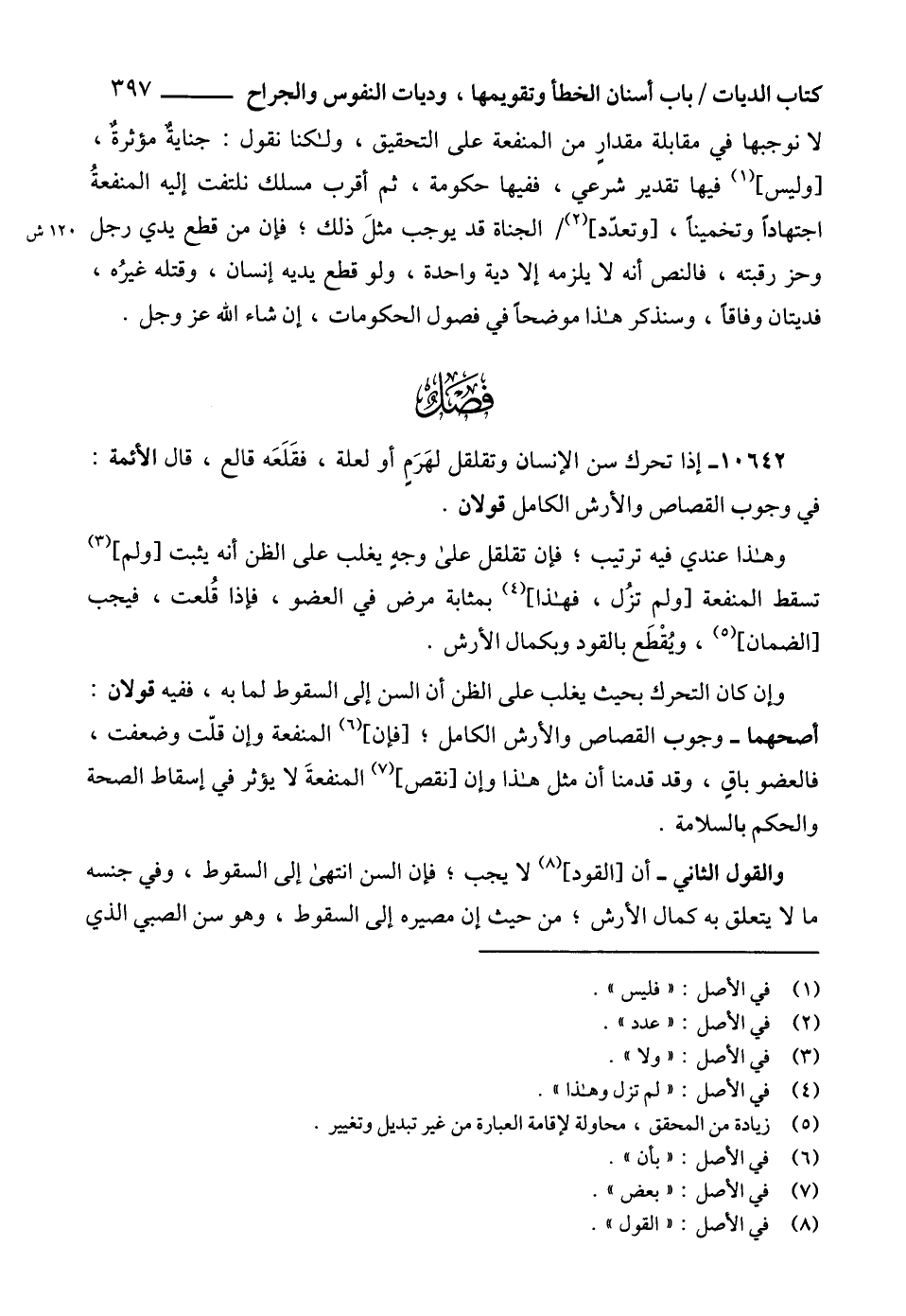 لا نوجبها في مقابلة مقدارٍ من المنفعة على التحقيق، ولكنا نقول: جنايةٌ مؤثرةٌ، [وليس] (1) فيها تقدير شرعي، ففيها حكومة، ثم أقرب مسلك نلتفت إليه المنفعةُ اجتهاداً وتخميناً، [وتعدّد] (2) الجناة قد يوجب مثلَ ذلك؛ فإن من قطع يدي رجل وحز رقبته، فالنص أنه لا يلزمه إلا دية واحدة، ولو قطع يديه إنسان، وقتله غيرُه، فديتان وفاقاً، وسنذكر هذا موضحاً في فصول الحكومات، إن شاء الله عز وجل.