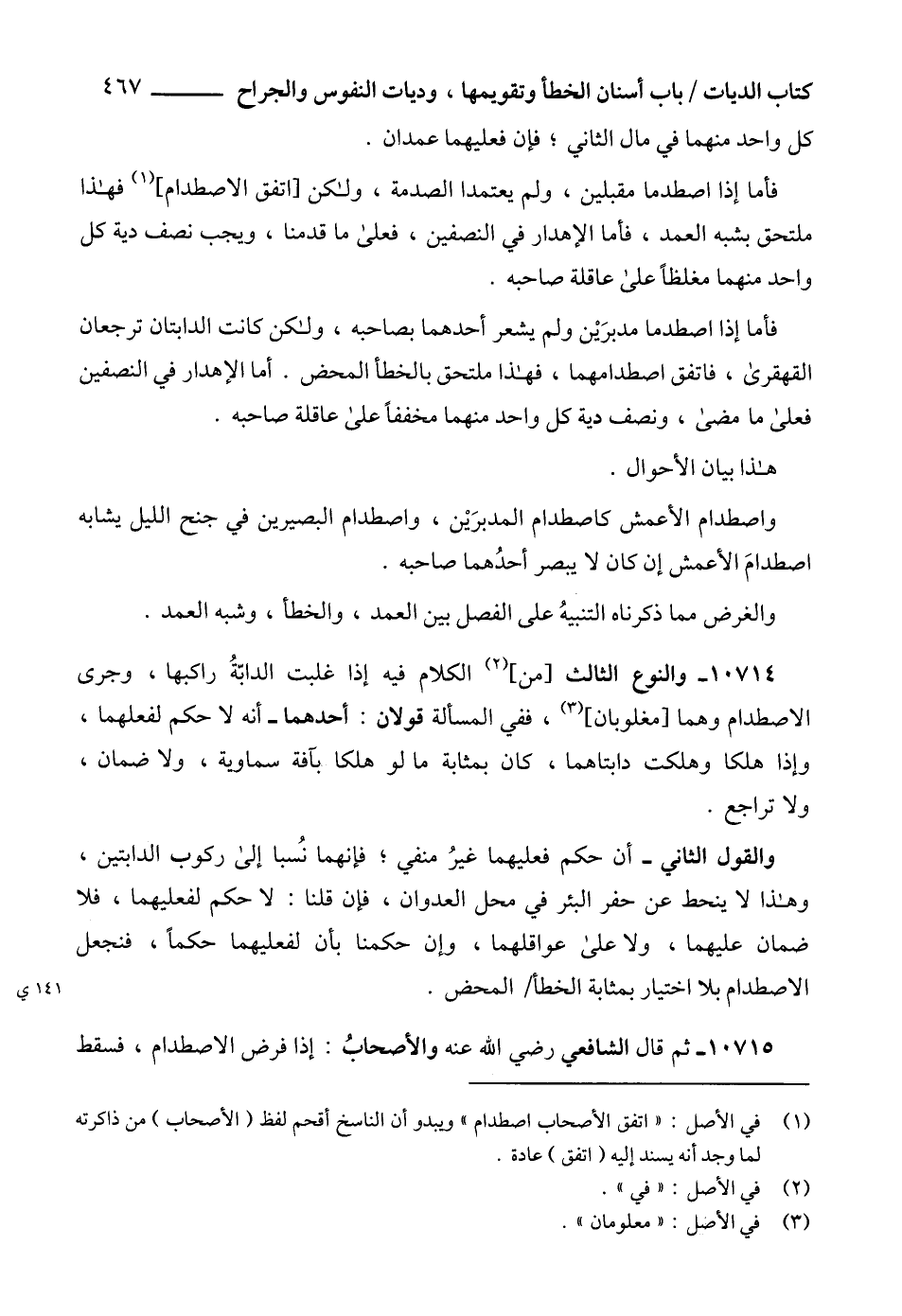 (1) في الأصل: "اتفق الأصحاب اصطدام" ويبدو أن الناسخ أقحم لفظ (الأصحاب) من ذاكرته لما وجد أنه يسند إليه (اتفق) عادة.