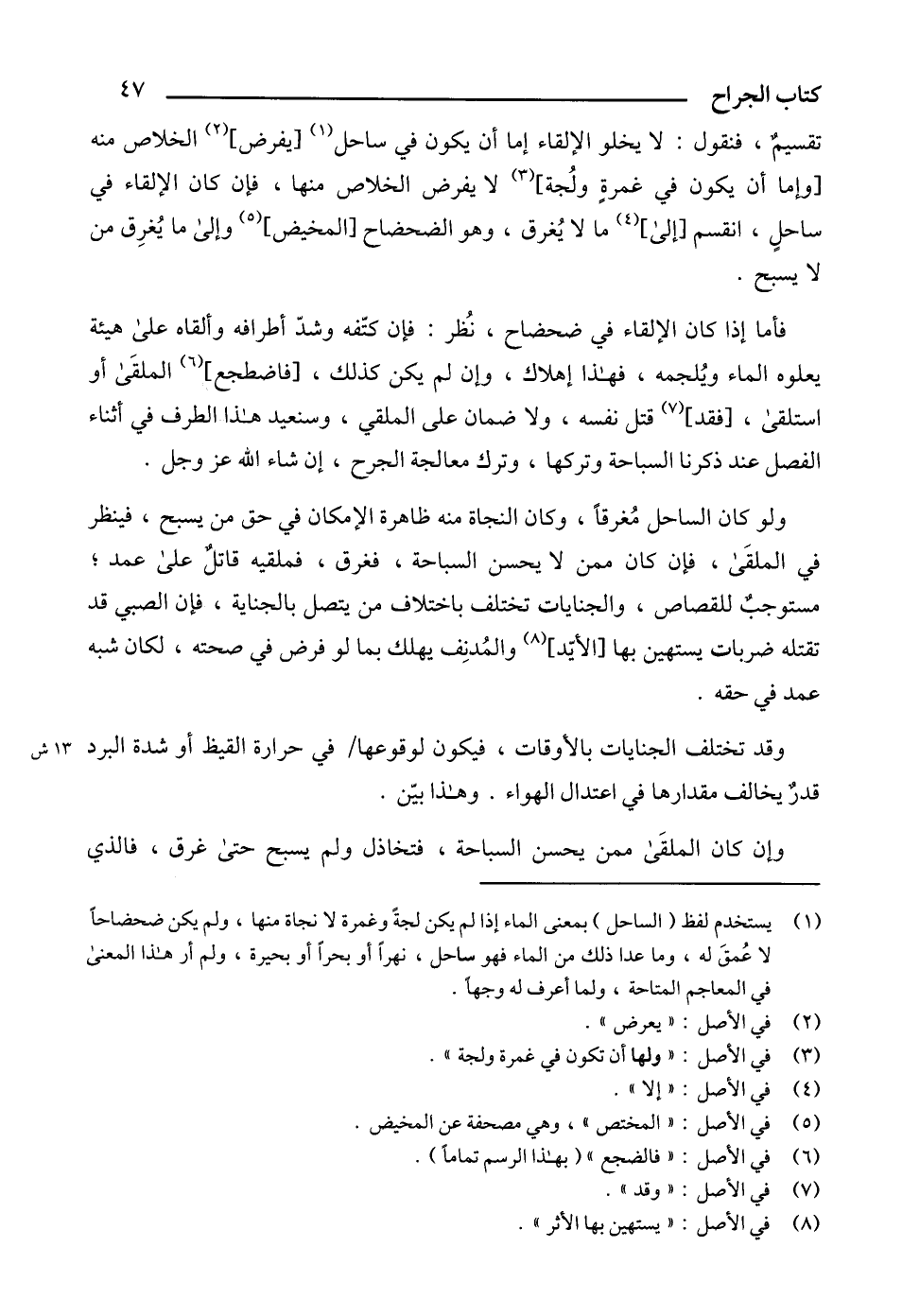 (1) يستخدم لفظ (الساحل) بمعنى الماء إذا لم يكن لجةً وغمرة لا نجاة منها، ولم يكن ضحضاحاً لا عُمقَ له، وما عدا ذلك من الماء فهو ساحل، نهراً أو بحراً أو بحيرة، ولم أر هذا المعنى في المعاجم المتاحة، ولما أعرف له وجهاً.