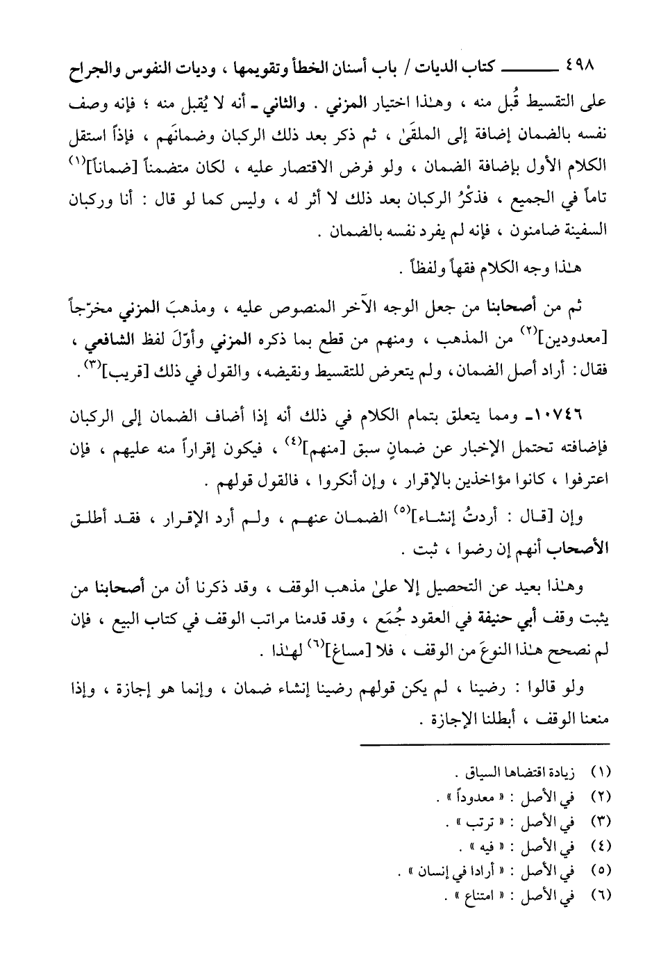 ثم من أصحابنا من جعل الوجه الآخر المنصوص عليه، ومذهبَ المزني مخرّجاً [معدودين] (2) من المذهب، ومنهم من قطع بما ذكره المزني وأوّلَ لفظ الشافعي، فقال: أراد أصل الضمان، ولم يتعرض للتقسيط ونقيضه، والقول في ذلك [قريب] (3).