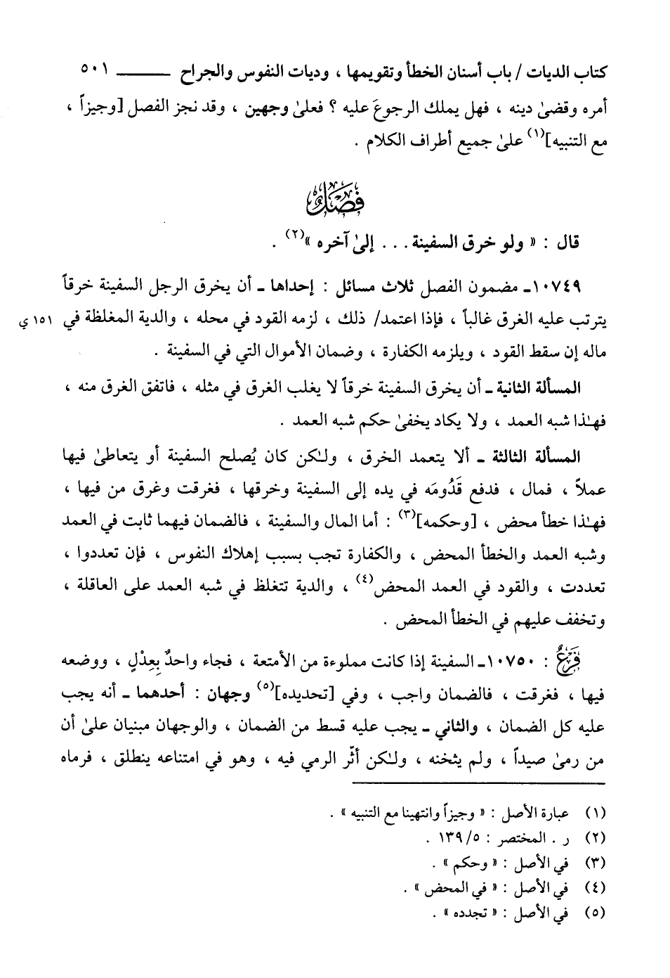 10749 - مضمون الفصل ثلاث مسائل: إحداها - أن يخرق الرجل السفينة خرقاً يترتب عليه الغرق غالباً، فإذا اعتمد ذلك، لزمه القود في محله، والدية المغلظة في ماله إن سقط القود، ويلزمه الكفارة، وضمان الأموال التي في السفينة. المسألة الثانية - أن يخرق السفينة خرقاً لا يغلب الغرق في مثله، فاتفق الغرق منه، فهذا شبه العمد، ولا يكاد يخفى حكم شبه العمد.