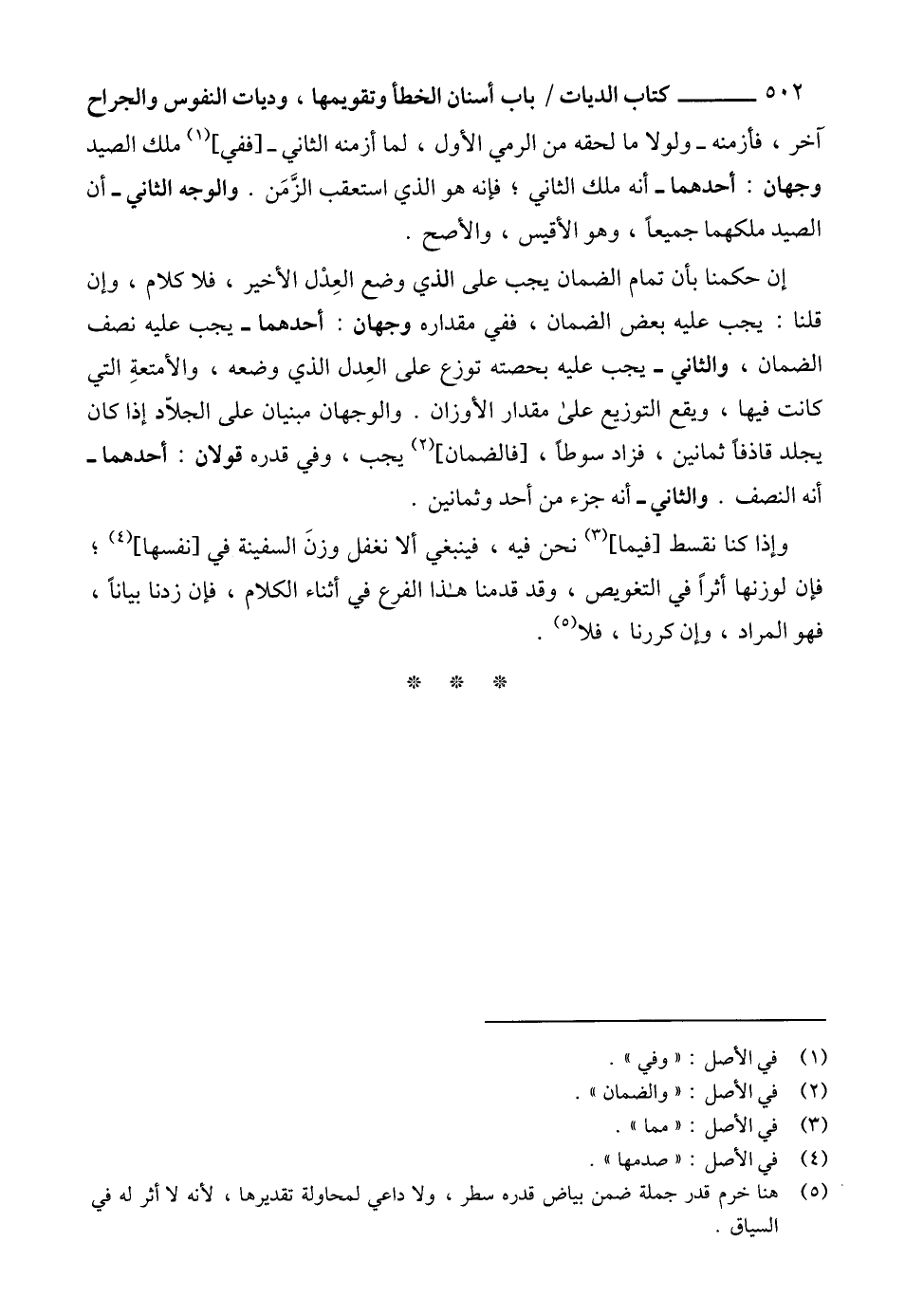 (5) هنا خرم قدر جملة ضمن بياض قدره سطر، ولا داعي لمحاولة تقديرها، لأنه لا أثر له في السياق.