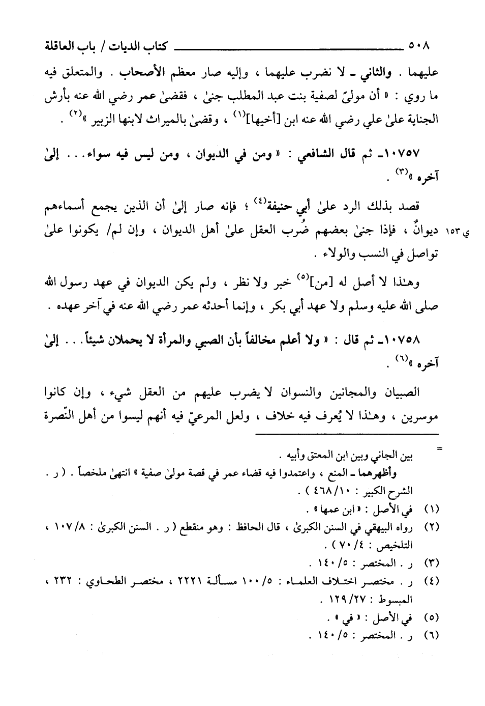 قصد بذلك الرد على أيى حنيفة (4)؛ فإنه صار إلى أن الذين يجمع أسماءهم ديوانٌ، فإذا جنى بعضهم ضُرب العقل على أهل الديوان، وإن لم يكونوا على تواصل في النسب والولاء.