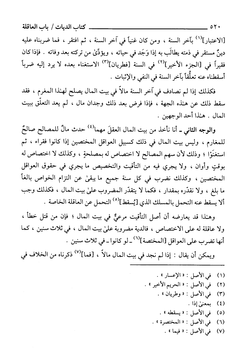 والوجه الثاني - أنا ناخذ من بيت المال العقلَ مهما (4) حدث مالٌ للمصالح صالحٌ للمغارم، وليس بيت المال في ذلك كسبيل العواقل المختصين إذا كانوا فقراء، ثم استغنَوْا؛ وذلك لأن سهم المصالح لا اختصاص له بمصلحةٍ، وكذلك لا اختصاص له بوقتٍ وأوان، ولا يجري فيه من التأقيت والتخصيص ما يجري في حقوق العواقل المختصين، وكذلك نضرب في كل سنة جميع ما يبقى عن التزام الخواص بالغاً ما بلغ، ولا نقدّره بمقدار، فكما لا يتقدّر المضروب على بيت المال، فكذلك وجب ألا يسقط عنه التحمل بالمسلك الذي [يُسقط] (5) التحمل عن العاقلة الخاصة.