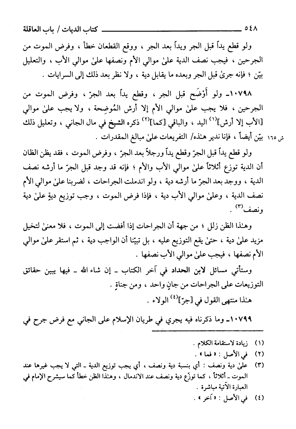 وستأتي مسائل لابن الحداد في آخر الكتاب -إن شاء الله- فيها يبين حقائق التوزيعات على الجراحات من جانٍ واحد، ومن جناةٍ.