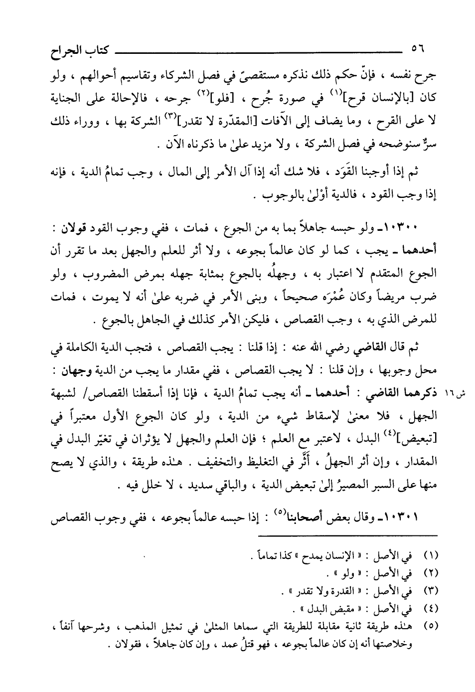 جرح نفسه، فإنّ حكم ذلك نذكره مستقصىً في فصل الشركاء وتقاسيم أحوالهم، ولو كان [بالإنسان قرح] (1) في صورة جُرح، [فلو،] (2) جرحه، فالإحالة على الجناية لا على القرح، وما يضاف إلى الآفات [المقدّرة لا تقدر] (3) الشركة بها، ووراء ذلك سرٌّ سنوضحه في فصل الشركة، ولا مزيد على ما ذكرناه الآن.