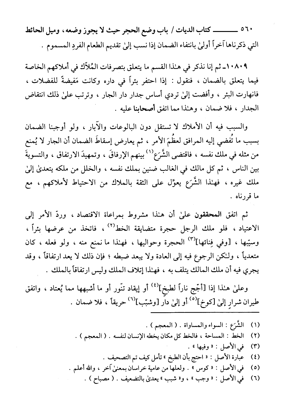 10809 - ثم إنا نذكر في هذا القسم ما يتعلق بتصرفات المُلاّك في أملاكهم الخاصة فيما يتعلق بالضمان، فنقول: إذا احتفر بئراً في داره وكانت مَفيضةً للفضلات، فانهارت البئر، وأفضت إلى تردي أساس جدار دار الجار، وترتب على ذلك انتقاض الجدار، فلا ضمان، وهذا مما اتفق أصحابنا عليه.