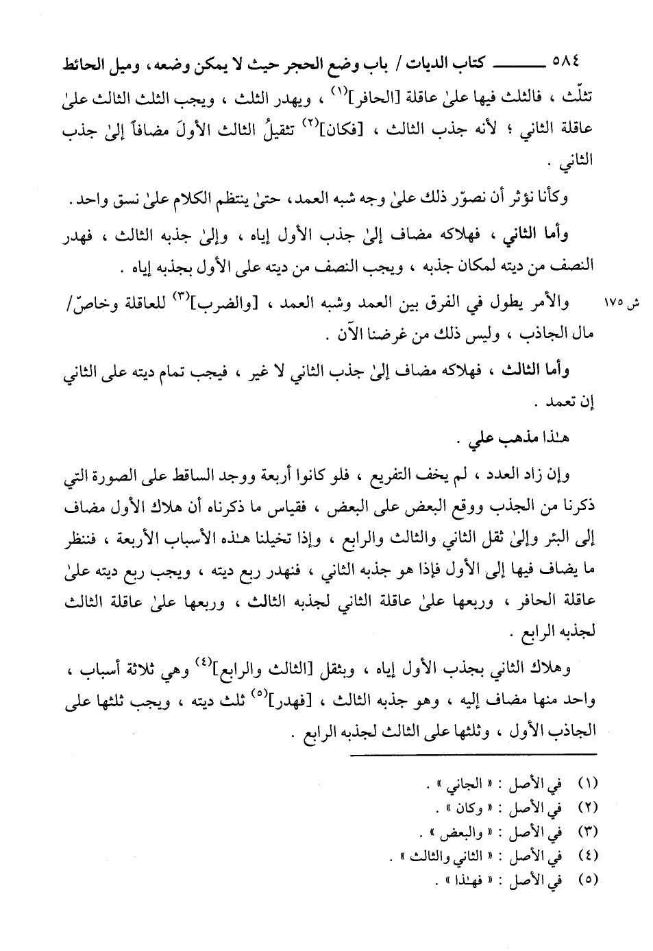 والأمر يطول في الفرق بين العمد وشبه العمد، [والضرب] (3) للعاقلة وخاصّ مال الجاذب، وليس ذلك من غرضنا الآن.