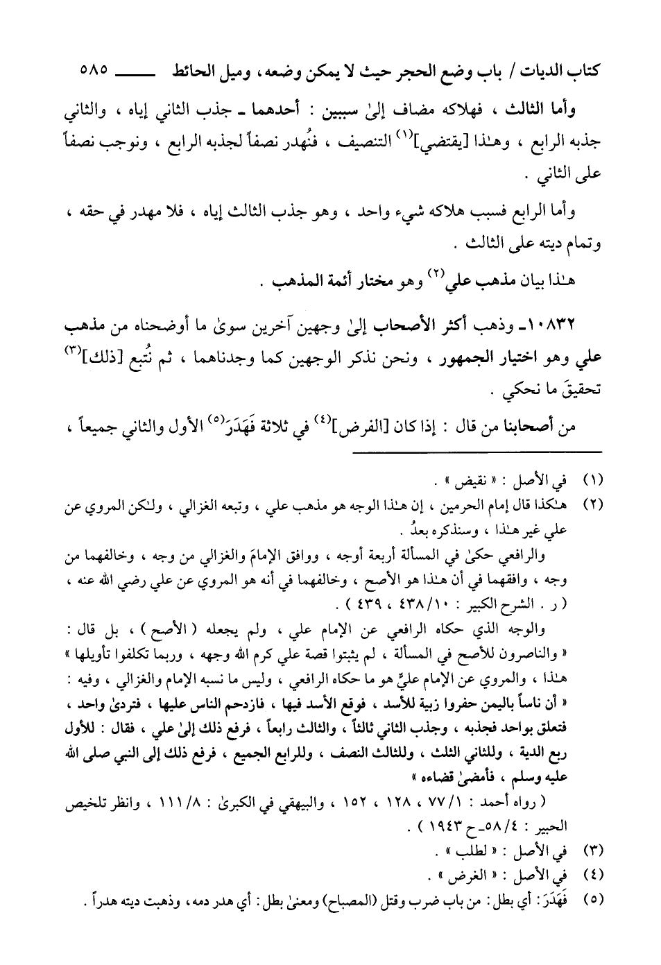 10832 - وذهب أكثر الأصحاب إلى وجهين آخرين سوى ما أوضحناه من مذهب علي وهو اختيار الجمهور، ونحن نذكر الوجهين كما وجدناهما، ثم نُتبع [ذلك] (3) تحقيقَ ما نحكي.