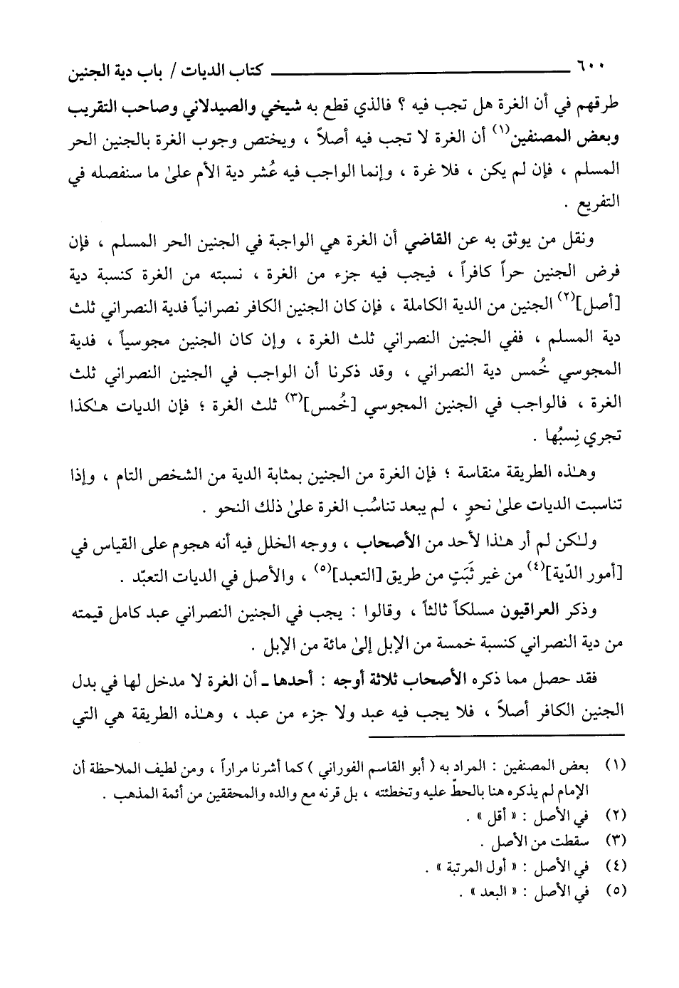 وذكر العراقيون مسلكاً ثالثاً، وقالوا: يجب في الجنين النصراني عبد كامل قيمته من دية النصراني كنسبة خمسة من الإبل إلى مائة من الإبل.