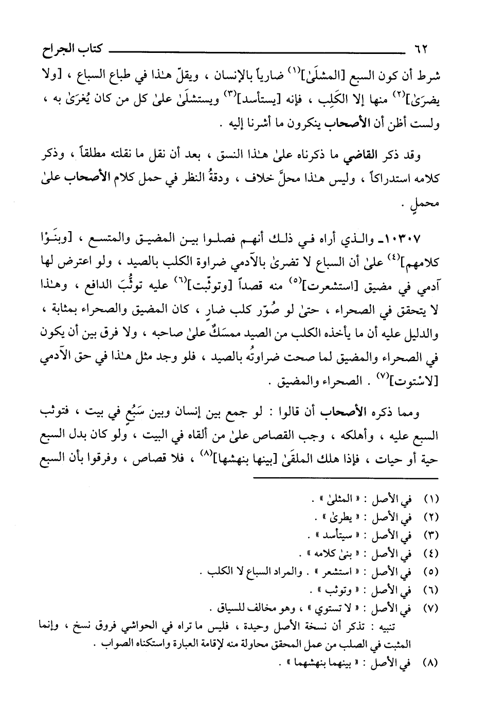 10307 - والذي أراه في ذلك أنهم فصلوا بين المضيق والمتسع، [وبنَوْا كلامهم] (4) على أن السباع لا تضرى بالآدمي ضراوة الكلب بالصيد، ولو اعترض لها آدمي في مضيق [استشعرت] (5) منه قصداً [وتوثّبت] (6) عليه توثُّبَ الدافع، وهذا لا يتحقق في الصحراء، حتى لو صُوّر كلب ضارٍ، كان المضيق والصحراء بمثابة، والدليل عليه أن ما يأخذه الكلب من الصيد ممسَكٌ على صاحبه، ولا فرق بين أن يكون في الصحراء والمضيق لما صحت ضراوتُه بالصيد، فلو وجد مثل هذا في حق الآدمي [لاسْتوت] (7). الصحراء والمضيق.
