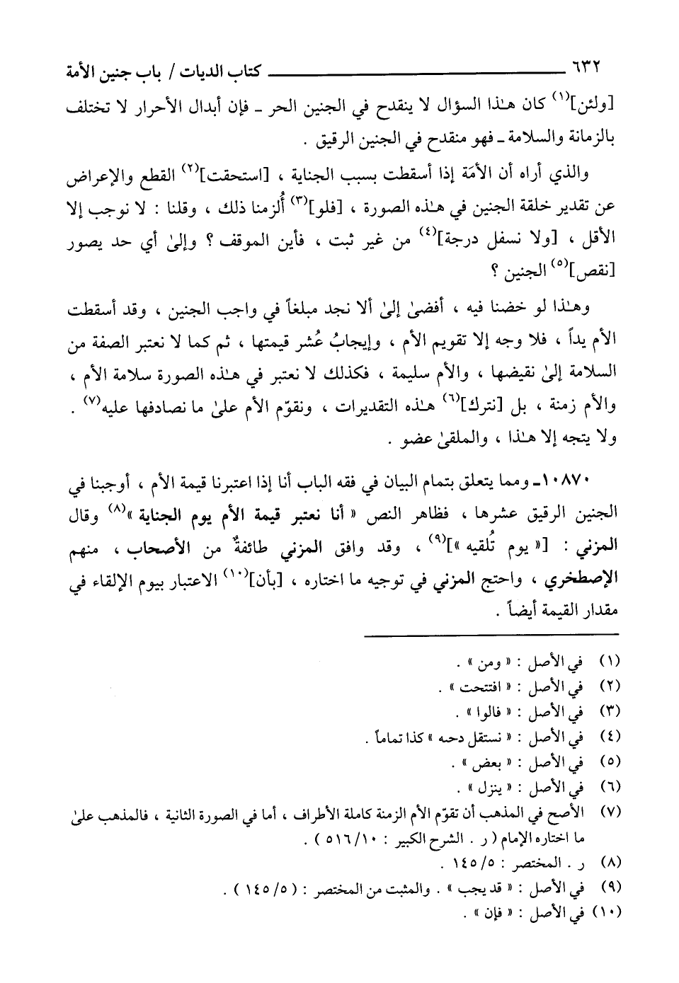 10870 - ومما يتعلق بتمام البيان في فقه الباب أنا إذا اعتبرنا قيمة الأم، أوجبنا في الجنين الرقيق عشرها، فظاهر النص " أنا نعتبر قيمة الأم يوم الجناية " (8) وقال المزني: ["يوم تُلقيه"] (9)، وقد وافق المزني طائفةٌ من الأصحاب، منهم الإصطخري، واحتج المزني في توجيه ما اختاره، [بأن] (10) الاعتبار بيوم الإلقاء في مقدار القيمة أيضاًً.