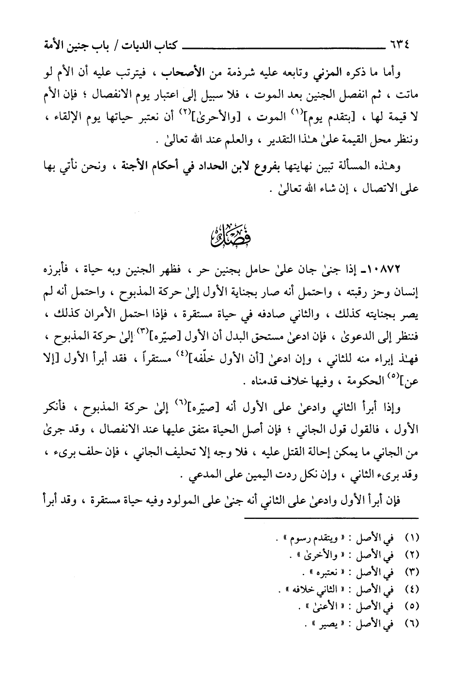 وهذه المسألة تبين نهايتها بفروع لابن الحداد في أحكام الأجنة، ونحن نأتي بها على الاتصال، إن شاء الله تعالى.
