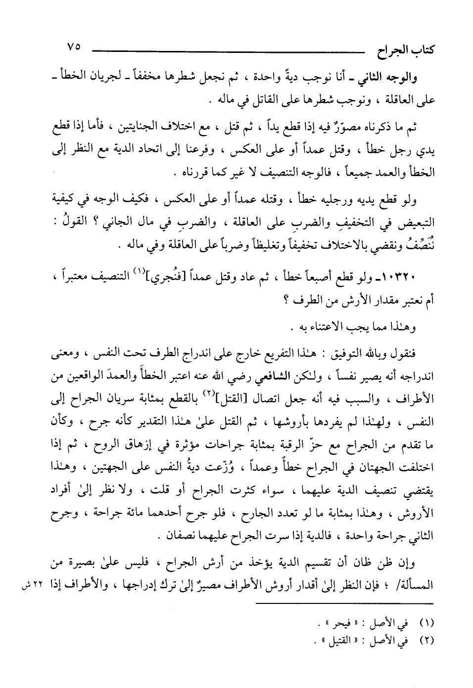 10320 - ولو قطع أصبعاً خطأ، ثم عاد وقتل عمداً [فنُجري] (1) التنصيف معتبراً، أم نعتبر مقدار الأرش من الطرف؟