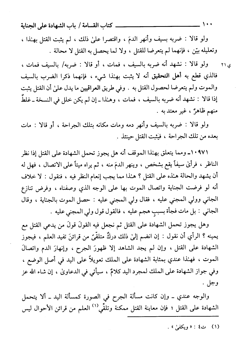 10971 - ومما يتعلق بهذا الموقف أنه هل يجوز تحمل الشهادة على القتل إذا نظر الناظر، فرأى سيفاً يقع بشخص، وينهر الدمَ منه، ثم يراه ميتاً على الاتصال، فهل له أن يشهد والحالة هذه على القتل؟ هذا مما يجب إنعام النظر فيه، فنقول: لا خلاف أنه لو فرضت الجناية واتصال الموت بها على الوجه الذي وصفناه، وفرض تنازع الجاني وولي المجني عليه، فقال ولي المجني عليه: حصل الموت بالجناية، وقال الجاني: بل مات فجأة بسببٍ هجم عليه، فالقول قول ولي المجني عليه.