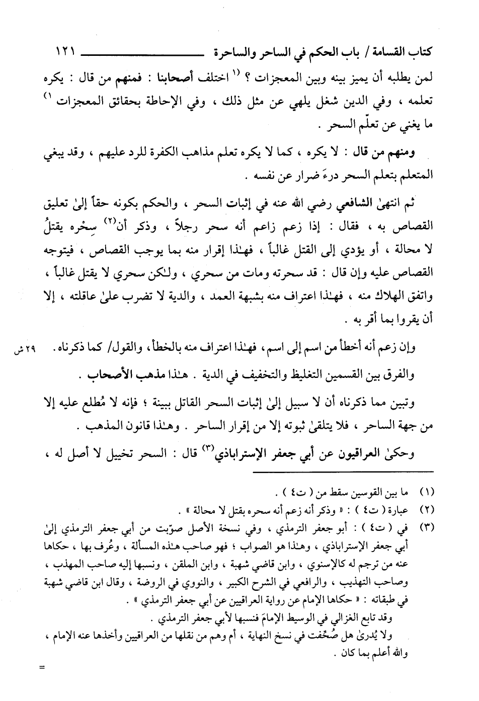 لمن يطلبه أن يميز بينه وبين المعجزات؟ (1 اختلف أصحابنا: فمنهم من قال: يكره تعلمه، وفي الدين شغل يلهي عن مثل ذلك، وفي الإحاطة بحقائق المعجزات 1) ما يغني عن تعلّم السحر.