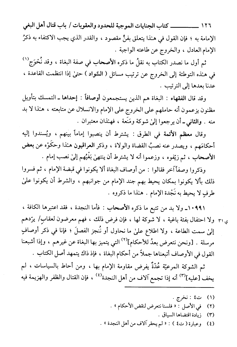 10991 - ولا بد من تتبع ما ذكره الأصحاب: فأما النجدة، فقد اعتبرها الكافة، ولا احتفال بفئة باغية، لا شوكة لها، فإن فرض ذلك، فهم معرضون لعقابٍ يرّدهم إلى سمت الطاعة، ولا اطلاع على ما نحاول أو نُنجز الفصلَ؛ فإنا في ذكر أوصافٍ مرسلة. [ونحن نتعرض بعدُ للأحكام] (2) التي يتميز بها البغاة عن غيرهم، وإذا أشبعنا القول في الأوصاف أتبعناها جملاً من أحكام البغاة، فإذ ذاك يتمهد أصل الكتاب.