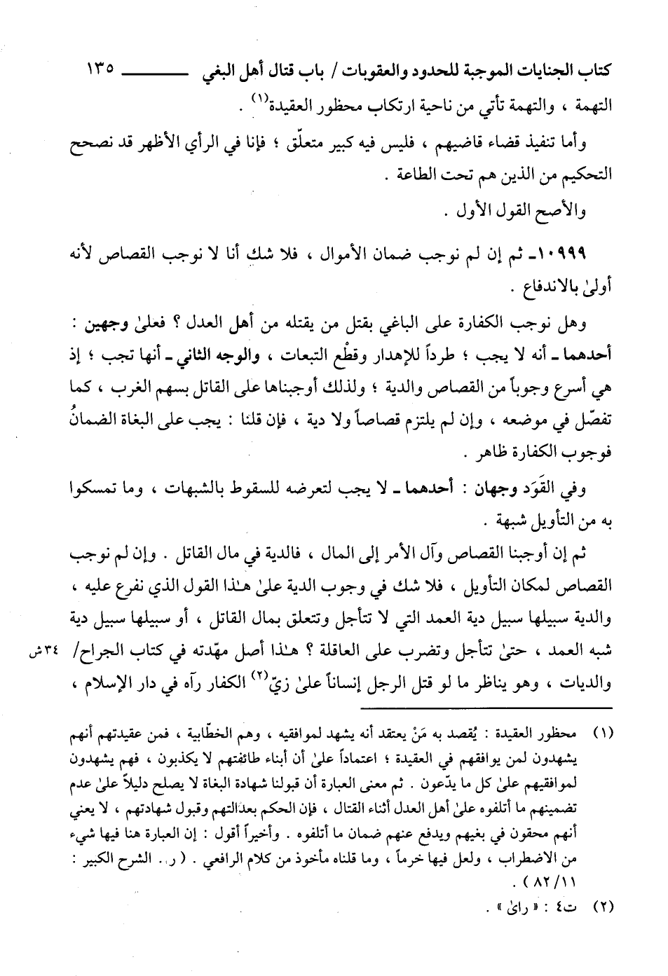 (1) محظور العقيدة: يُقصد به مَنْ يعتقد أنه يشهد لموافقيه، وهم الخطّابية، فمن عقيدتهم أنهم يشهدون لمن يوافقهم في العقيدة؛ اعتماداً على أن أبناء طائفتهم لا يكذبون، فهم يشهدون لموافقيهم على كل ما يدّعون. ثم معنى العبارة أن قبولنا شهادة البغاة لا يصلح دليلاً على عدم تضمينهم ما أتلفوه على أهل العدل أثناء القتال، فإن الحكم بعد التهم وقبول شهادتهم، لا يعني أنهم محقون في بغيهم ويدفع عنهم ضمان ما أتلفوه. وأخيراً أقول: إن العبارة هنا فيها شيء من الاضطراب، ولعل فيها خرماً، وما قلناه مأخوذ من كلام الرافعي. (ر. الشرح الكبير: 11/ 82).
