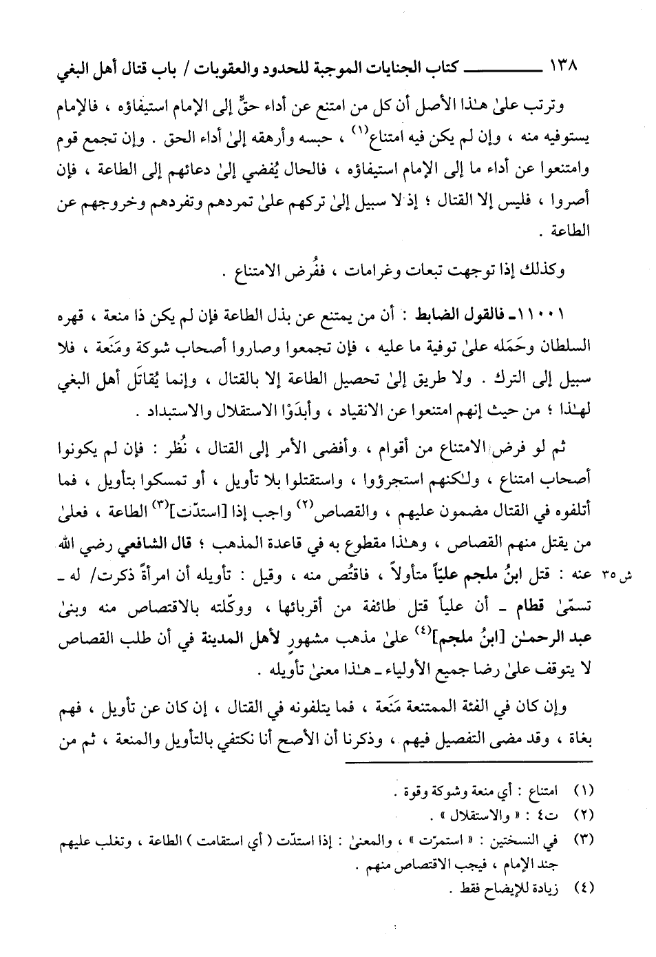 (3) في النسختين: " استمرّت "، والمعنى: إذا استدّت (أي استقامت) الطاعة، وتغلب عليهم جند الإمام، فيجب الاقتصاص منهم.