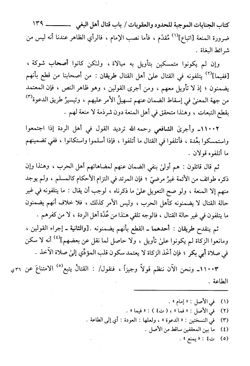 11003 - ونحن الآن ننظم قولاً وجيزاً، فنقول: القتالُ يتبع (5) الامتناعَ عن الطاعة.
