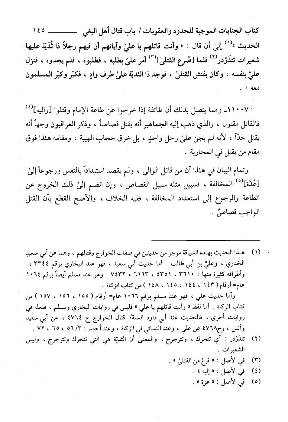 (1) هذا الحديث بهذه السياقة موجز من حديثين في صفات الخوارج وقتالهم، وهما عن أبي سعيدٍ الخدري، وعليٍّ بن أبي طالب. أما حديث أبي سعيد، فهو عند البخاري برقم 3344، وأطرافه كثيرة منها: 3610، 4351، 6163، 7432. وهو عند مسلم أيضاً برقم 1064 عام= أرقام (143، 144، 145، 148) من كتاب الزكاة.