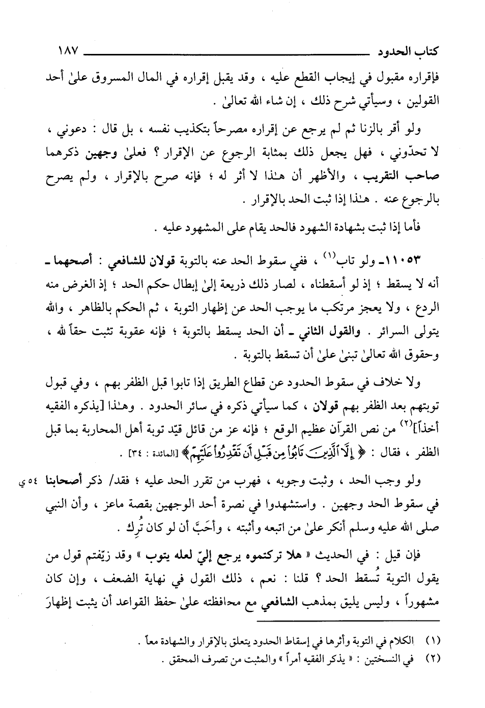 (1) الكلام في التوبة وأثرها في إسقاط الحدود يتعلق بالإقرار والشهادة معاً.