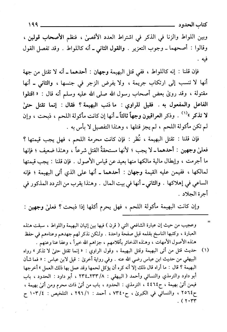 =وعجيب من حيث إن عبارة الشافعي التي (قرن) فيها بين إتيان البهيمة واللواط، سبقت هذه العبارة، وكتبها الناسخ بقلمه قبل صفحة واحدة. ولكن نذكر لهم جهدهم وعناءهم في حفظ هذه الأصول الأمهات، وهذه الذخائر بأقلامهم، جزاهم الله خيراً، وعفا عنا وعنهم.