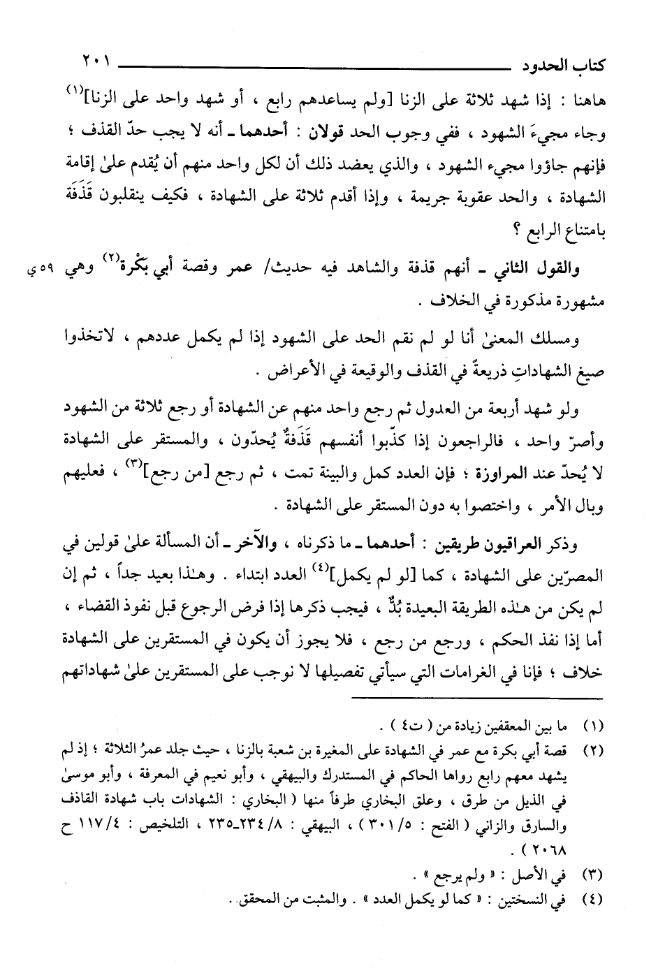 (2) قصة أبي بكرة مع عمر في الشهادة على المغيرة بن شعبة بالزنا، حيث جلد عمرُ الثلاثة؛ إذ لم يشهد معهم رابع رواها الحاكم في المستدرك والبيهقي، وأبو نعيم في المعرفة، وأبو موسى في الذيل من طرق، وعلق البخاري طرفاً منها (البخاري: الشهادات باب شهادة القاذف والسارق والزاني (الفتح: 5/ 301)، البيهقي: 8/ 234 - 235، التلخيص: 4/ 117 ح 2068).