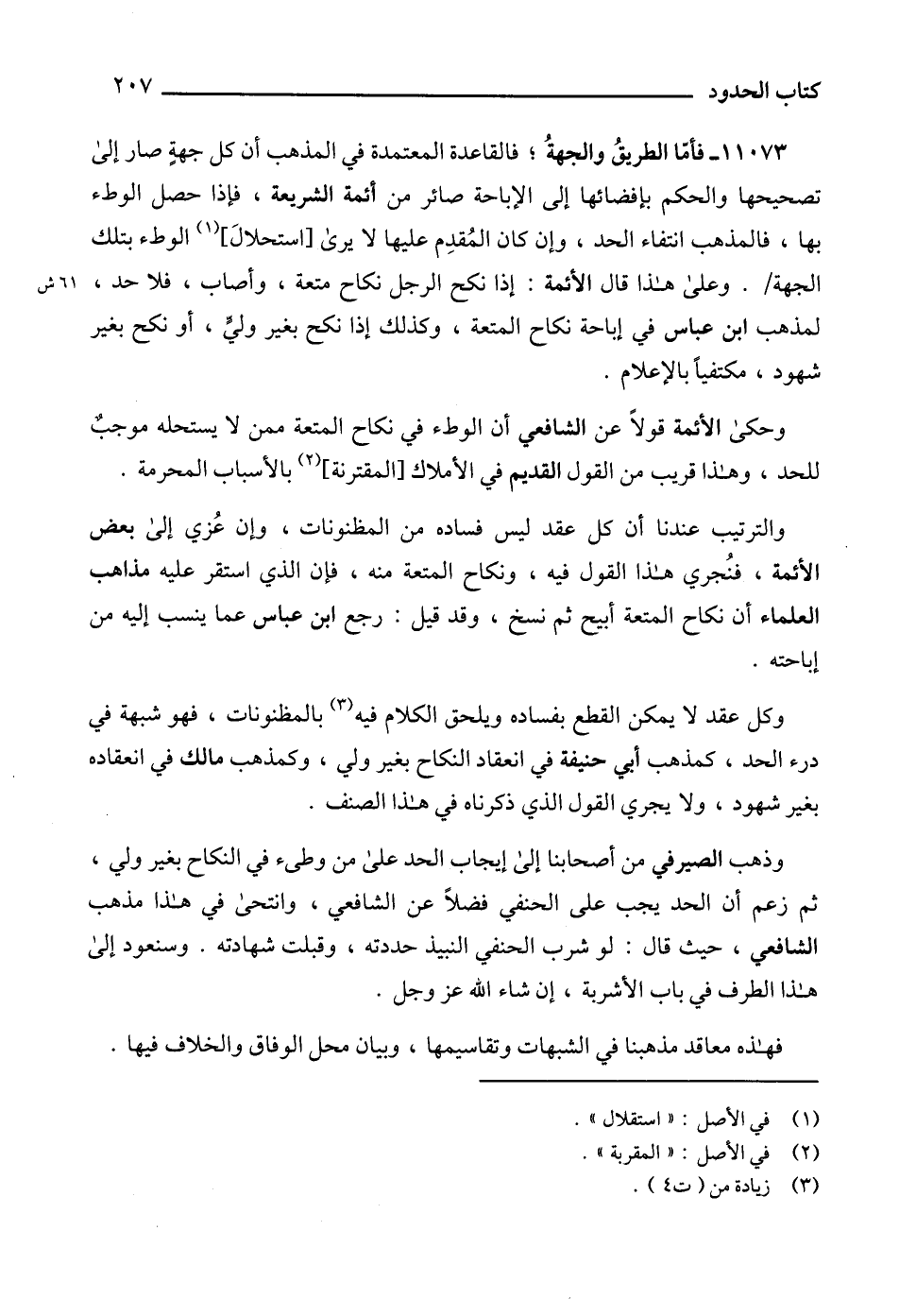 11073 - فأمّا الطريقُ والجهةُ؛ فالقاعدة المعتمدة في المذهب أن كل جهةٍ صار إلى تصحيحها والحكم بإفضائها إلى الإباحة صائر من أئمة الشريعة، فإذا حصل الوطء بها، فالمذهب انتفاء الحد، وإن كان المُقدِم عليها لا يرى [استحلالَ] (1) الوطء بتلك الجهة. وعلى هذا قال الأئمة: إذا نكح الرجل نكاح متعة، وأصاب، فلا حد، لمذهب ابن عباس في إباحة نكاح المتعة، وكذلك إذا نكح بغير وليٍّ، أو نكح بغير شهود، مكتفياً بالإعلام.