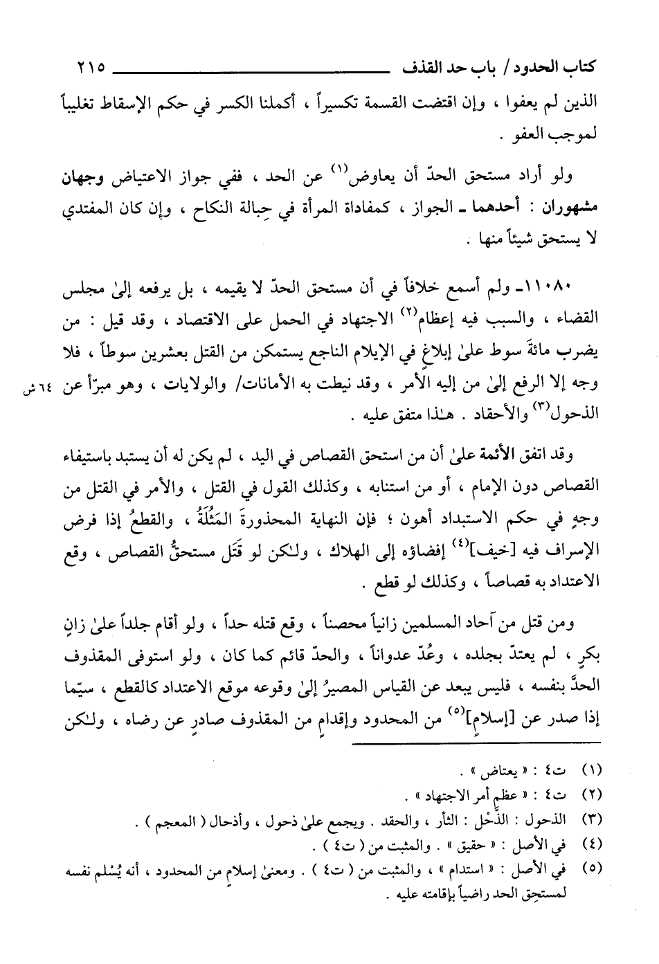 (5) في الأصل: " استدام "، والمثبت من (ت 4). ومعنى إسلامٍ من المحدود، أنه يُسْلم نفسه لمستحِق الحد راضياً بإقامته عليه.