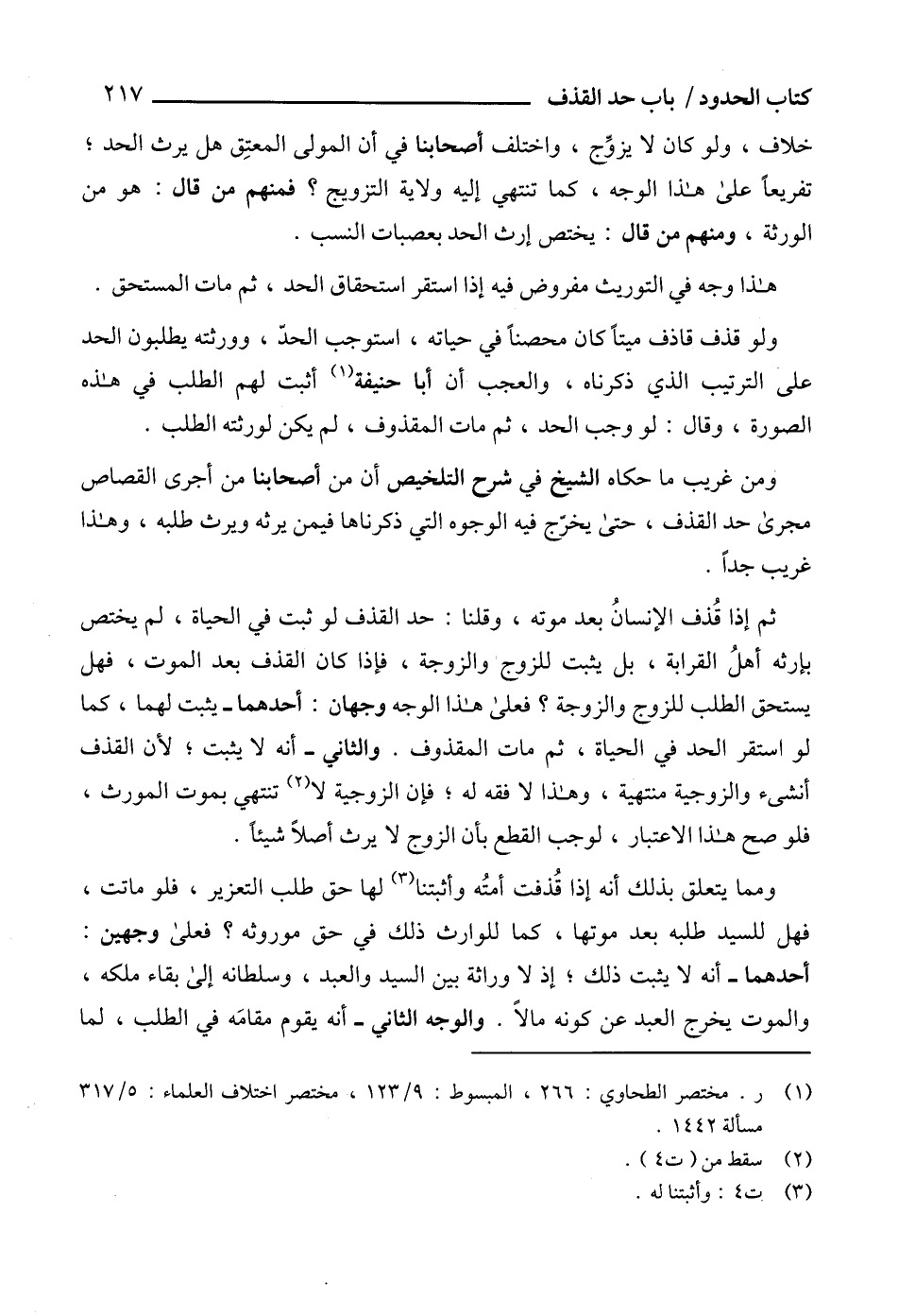 (1) ر. مختصر الطحاوي: 266، المبسوط: 9/ 123، مختصر اختلاف العلماء: 5/ 317