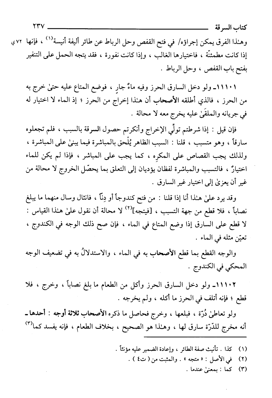 11101 - ولو دخل السارق الحرز وفيه ماءٌ جارٍ، فوضع المتاع عليه حتى خرج به من الحرز، فالذي أطلقه الأصحاب أن هذا إخراج من الحرز؛ إذ الماء لا اختيار له في جريانه والملقَى عليه يخرج معه لا محالة.