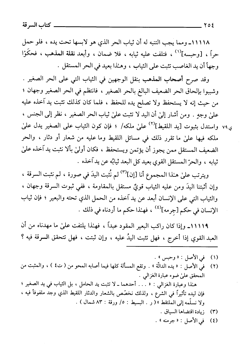 11119 - وإذا كان راكب البعير المقود عبداً، فهذا يلتفت على ما مهدناه من أن العبد القوي إذا أخرج، فهل تثبت اليدُ عليه، وإن ثبتت، فهل تتحقق السرقة فيه؟