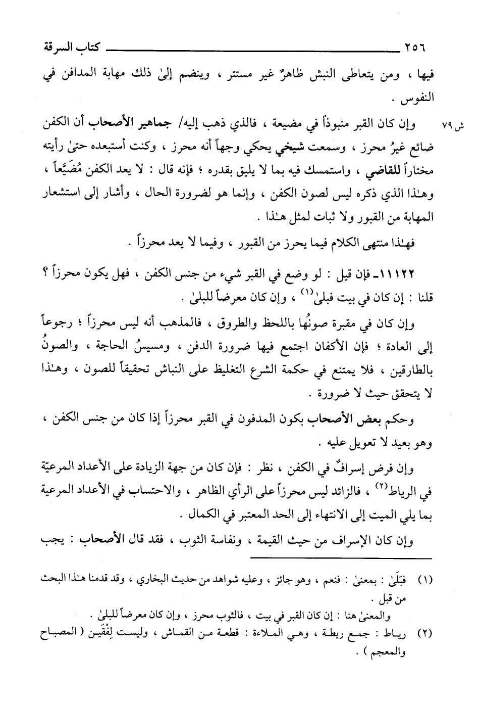 11122 - فإن قيل: لو وضع في القبر شيء من جنس الكفن، فهل يكون محرزاً؟ قلنا: إن كان في بيت فبلى (1)، وإن كان معرضاً للبلى.