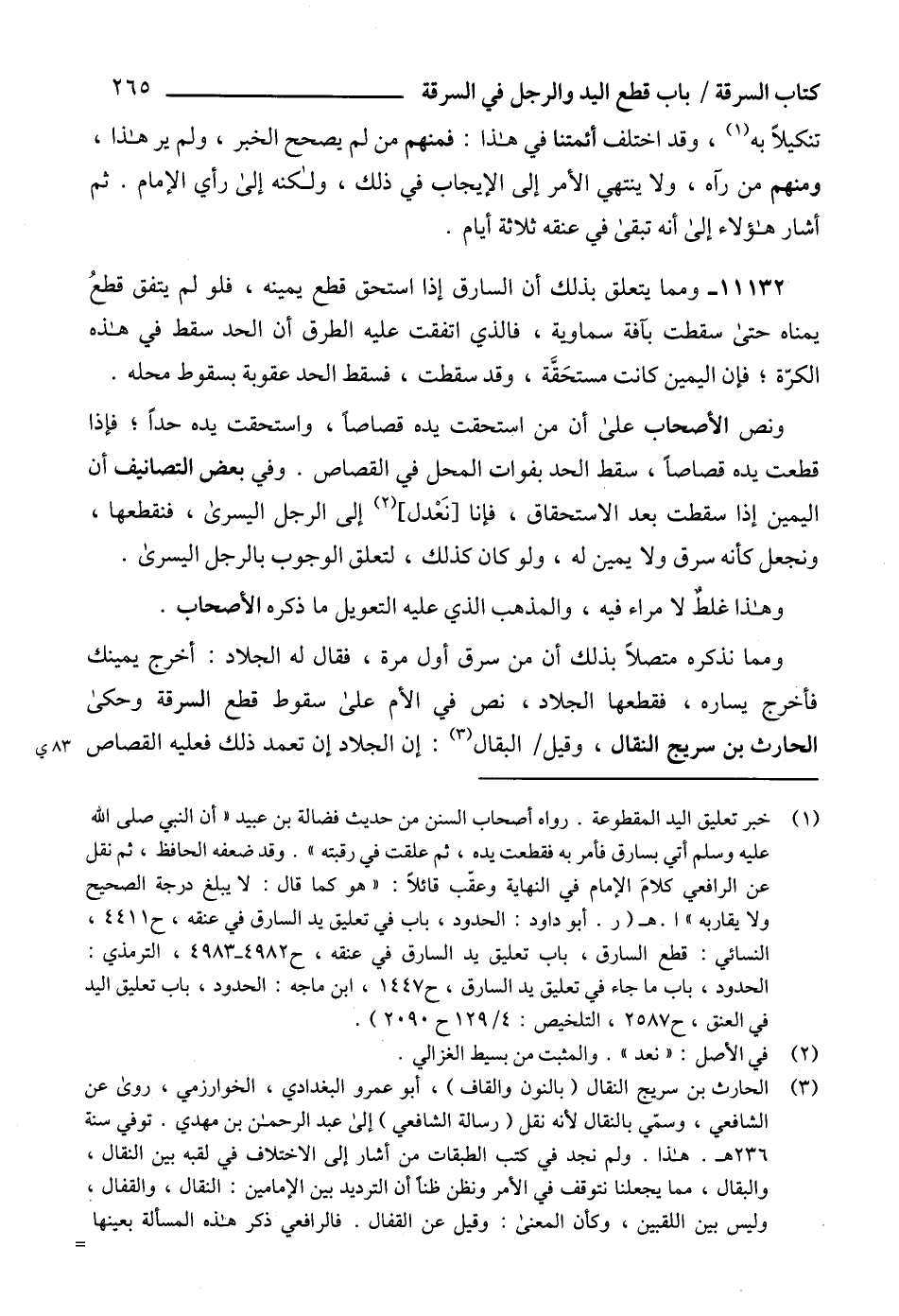 (3) الحارث بن سريج النقال (بالنون والقاف)، أبو عمرو البغدادي، الخوارزمي، روى عن الشافعي، وسمّي بالنقال لأنه نقل (رسالة الشافعي) إلى عبد الرحمن بن مهدي. توفي سنة 236 هـ. هذا. ولم نجد في كتب الطبقات من أشار إلى الاختلاف في لقبه بين النقال، والبقال، مما يجعلنا نتوقف في الأمر ونظن ظناً أن الترديد بين الإمامين: النقال، والقفال، وليس بين اللقبين، وكان المعنى: وقيل عن القفال. فالرافعي ذكر هذه المسألة بعينها=