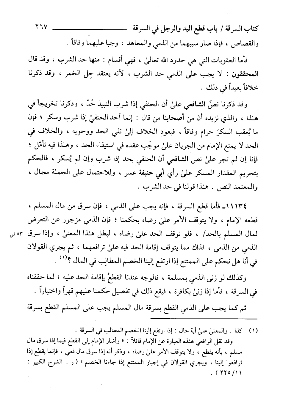 وقد نقل الرافعي هذه العبارة عن الإمام قائلاً: " وأشار الإمام إلى القطع فيما إذا سرق مال مسلم، بأنه يقطع، ولا يتوقف الأمر على رضاه، وذكر أنه إذا سرق مال ذمي، فإنما يقطع إذا ترافعوا إلينا، ويجري القولان في إجبار الممتنع إذا جاءنا الخصم " (ر. الشرح الكبير: 11/ 225).
