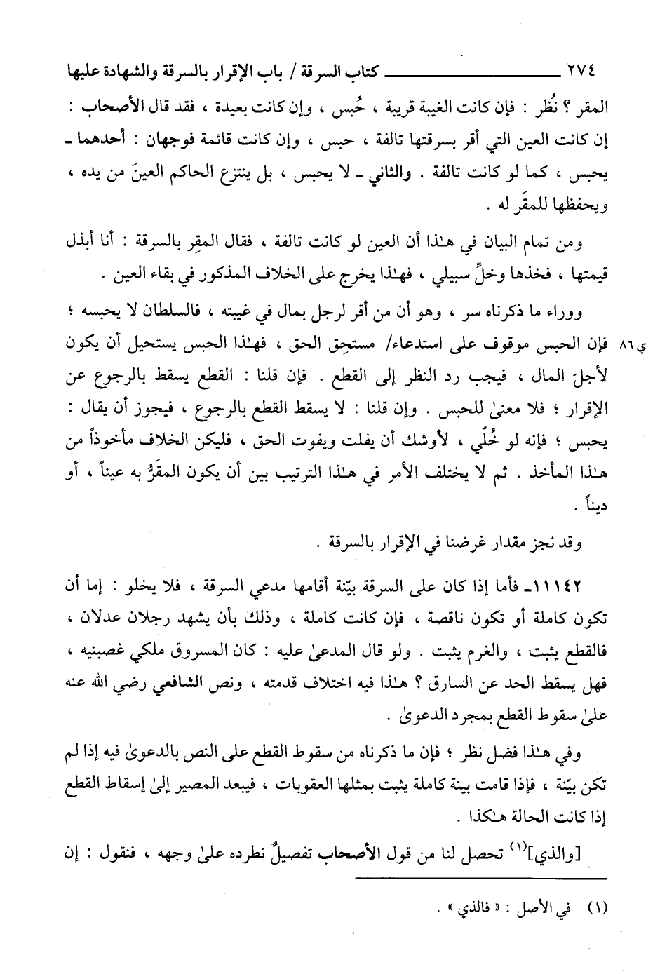 11142 - فأما إذا كان على السرقة بيّنة أقامها مدعي السرقة، فلا يخلو: إما أن تكون كاملة أو تكون ناقصة، فإن كانت كاملة، وذلك بأن يشهد رجلان عدلان، فالقطع يثبت، والغرم يثبت. ولو قال المدعى عليه: كان المسروق ملكي غصبنيه، فهل يسقط الحد عن السارق؟ هذا فيه اختلاف قدمته، ونص الشافعي رضي الله عنه على سقوط القطع بمجرد الدعوى.
