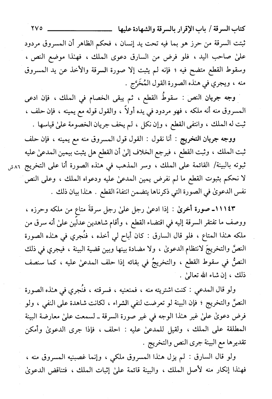 11143 - صورة أخرى: إذا ادعى رجل على رجل سرقةَ متاعٍ من ملكه وحرزه، ووصف ما تفتقر السرقة إليه في اقتضاء القطع، وأقام شاهدين عدلين على أنه سرق من ملكه هذا المتاع، فلو قال السارق: كان أباح لي أخذه، فنُجري في هذه الصورة النصَّ والتخريجَ لانتظام الدعوى، ولا مضادة بينها وبين قضية البينة، فيجري في ذلك النصُّ في سقوط القطع، والتخريجُ في بقائه إذا حلف المدعى عليه، كما سنصف ذلك، إن شاء الله تعالى.