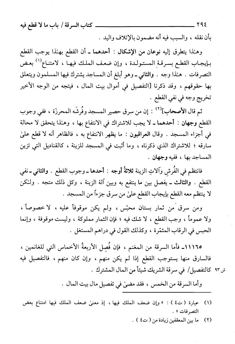 ثم قال الأصحاب] (2): إن من سرق حصير المسجد وفُرشَه المحرزَة، ففي وجوب القطع وجهان: أحدهما - لا يجب للاشتراك في الانتفاع بها، وهذا يتحقق لا محالة في أجزاء المسجد. وقال العراقيون: ما يظهر الانتفاع به، فالظاهر أنه لا قطع على سارقه؛ للاشتراك الذي ذكرناه، وما أثبت في المسجد للزينة، كالقناديل التي تزين المساجد بها، ففيه وجهان.