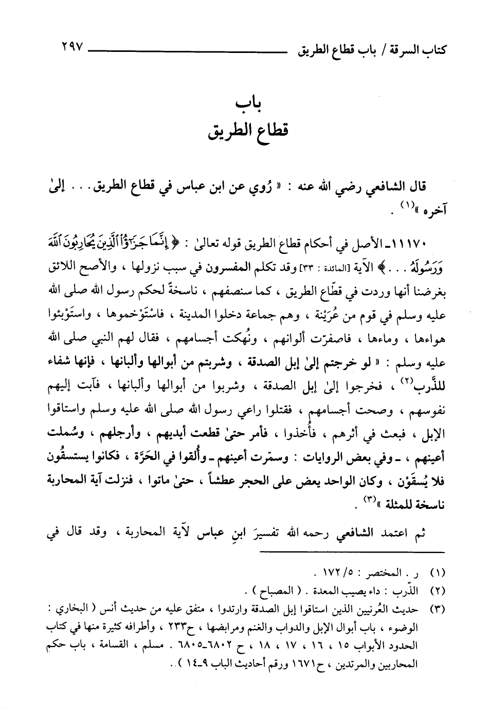 قال الشافعي رضي الله عنه: " رُوي عن ابن عباس في قطاع الطريق ... إلى آخره " (1).