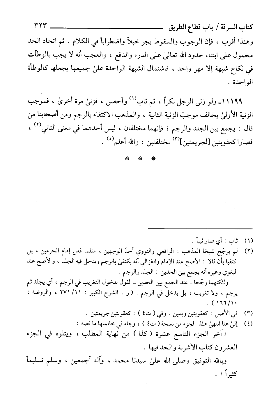 " آخر الجزء التاسع عشرة (كذا) من نهاية المطلب، ويتلوه في الجزء العشرون كتاب الأشربة والحد فيها.
