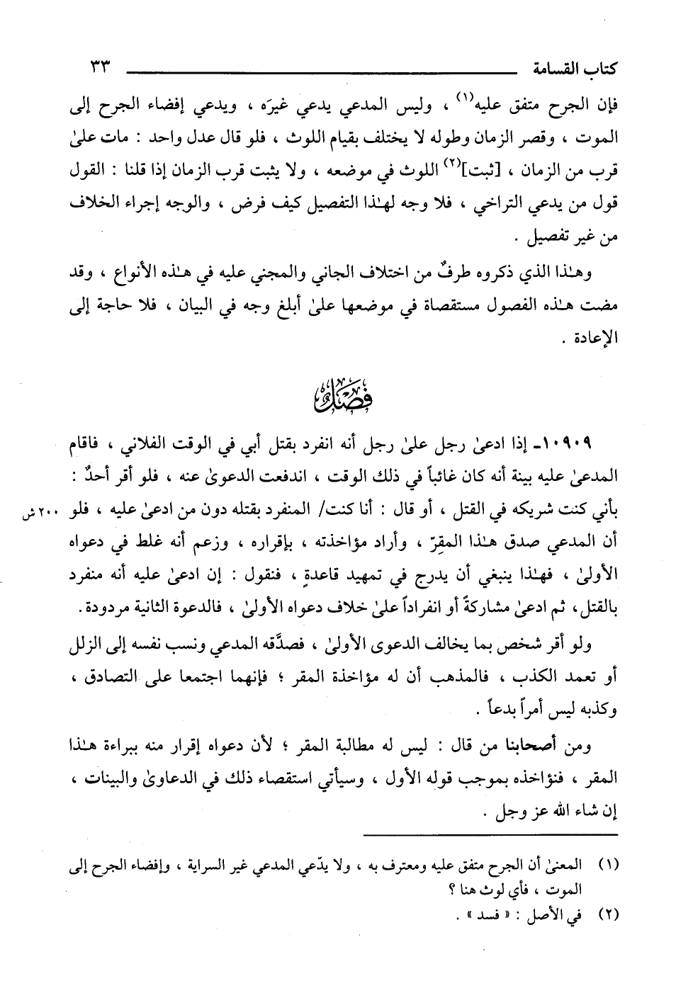 (1) المعنى أن الجرح متفق عليه ومعترف به، ولا يدّعي المدعي غير السراية، وإفضاء الجرح إلى الموت، فأي لوث هنا؟
