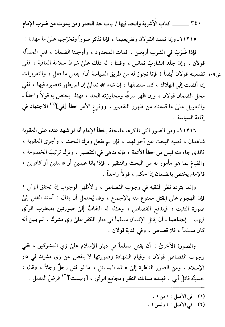 11215 - وإذا تمهد القولان وتفريعهما، فإنا نذكر صوراً ونخرّجها على ما مهدنا: فإذا ضَرَبَ في الشرب أربعين، فمات المحدود، وأوجبنا الضمان، ففي المسألة قولان. وإن جلد الشاربَ ثمانين، وقلنا: له ذلك على شرط سلامة العاقبة، ففي تضمينه قولان أيضاً؛ فإنا نجوز له من طريق السياسة أن يفعل ما فعل، والتعزيرات إذا أفضت إلى الهلاك، كما سنصفها، إن شاء الله تعالى إن لم يظهر تقصيره فيها، ففي محل الضمان قولان، وإن ظهر سرفُه ومجاوزته الحد، فهذا يختص به قولاً واحداً- والتعويل على ما قدمناه من ظهور التقصير، ووقوعِ الأمر خطأ [في] (1) الاجتهاد في إقامة السياسة.