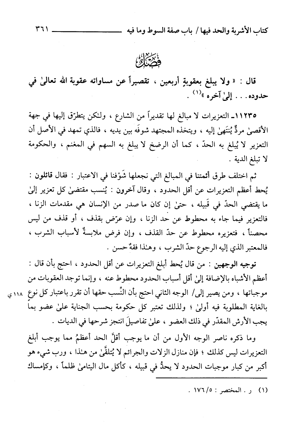 11235 - التعزيرات لا مبالغ لها تقديراً من الشارع، ولكن يتطرّق إليها في جهة الأقصى مردٌّ يُنتَهى إليه، ويتخذه المجتهد شوفَه بين يديه، فالذي تمهد في الأصل أن التعزير لا يُبلغ به الحدّ، كما أن الرضخ لا يبلغ به السهم في المغنم، والحكومة لا تبلغ الدية.
