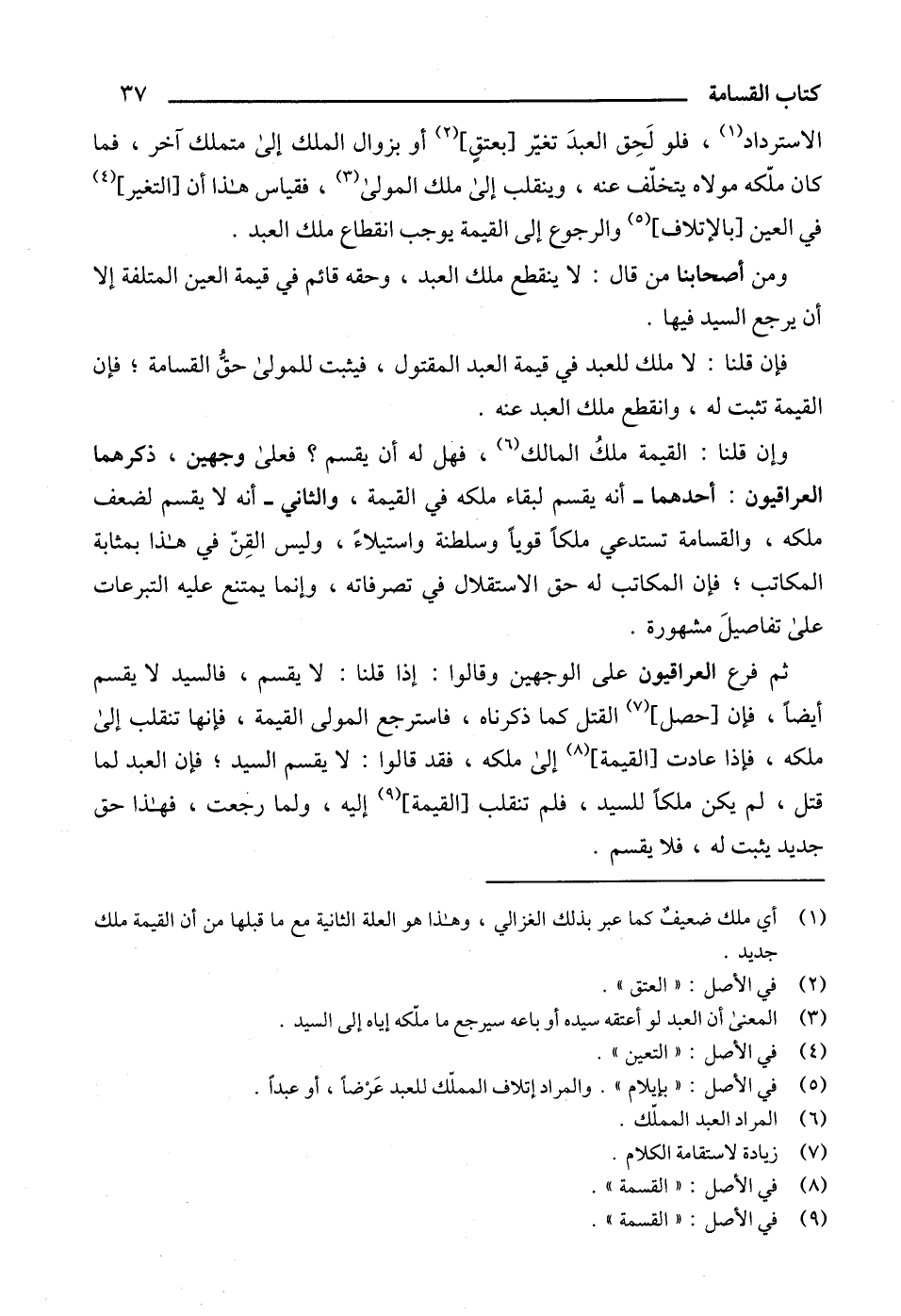 (1) أي ملك ضعيفٌ كما عبر بذلك الغزالي، وهذا هو العلة الثانية مع ما قبلها من أن القيمة ملك جديد.