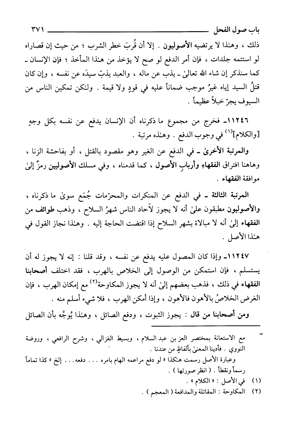 11246 - فخرج من مجموع ما ذكرناه أن الإنسان يدفع عن نفسه بكل وجهٍ [والكلام] (1) في وجوب الدفع. وهذه مرتبة.
