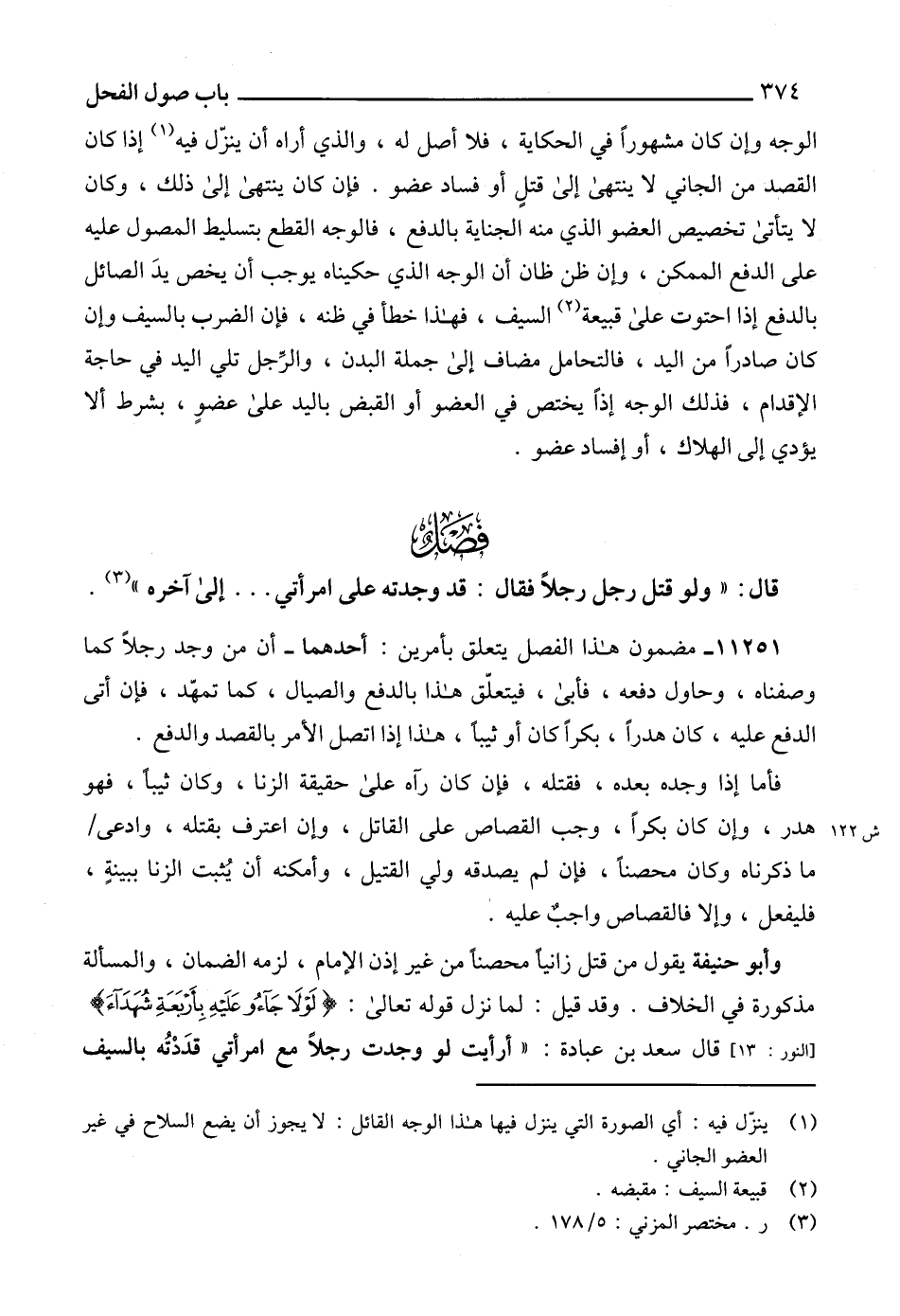 وأبو حنيفة يقول من قتل زانياً محصناً من غير إذن الإمام، لزمه الضمان، والمسألة مذكورة في الخلاف. وقد قيل: لما نزل قوله تعالى: {لَوْلَا جَاءُوا عَلَيْهِ بِأَرْبَعَةِ شُهَدَاءَ} [النور: 13] قال سعد بن عبادة: " أرأيت لو وجدت رجلاً مع امرأتي قدَدْتُه بالسيف