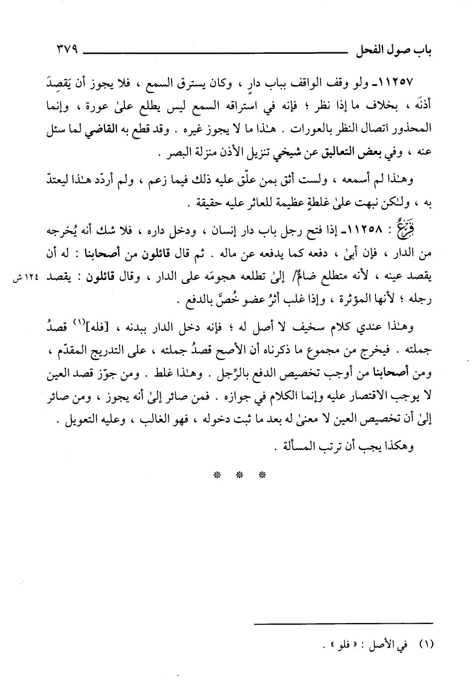 11257 - ولو وقف الواقف بباب دارٍ، وكان يسترق السمع، فلا يجوز أن يَقصِدَ أذنَه، بخلاف ما إذا نظر؛ فإنه في استراقه السمع ليس يطلع على عورة، وإنما المحذور اتصال النظر بالعورات. هذا ما لا يجوز غيره. وقد قطع به القاضي لما سئل عنه، وفي بعض التعاليق عن شيخي تنزيل الأذن منزلة البصر.